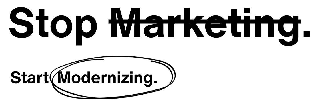 We replace outdated marketing with modern strategies, providing high-impact, hands-on help in design, tech, and special projects to help your business adapt + thrive in the age of AI and transparency.