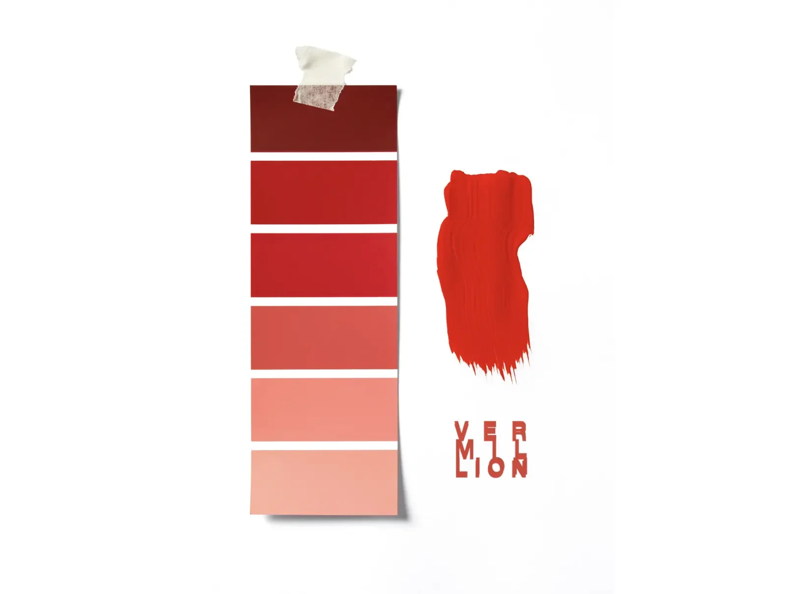 "Vermillion" is a brilliant, fiery red color with a hint of orange.
